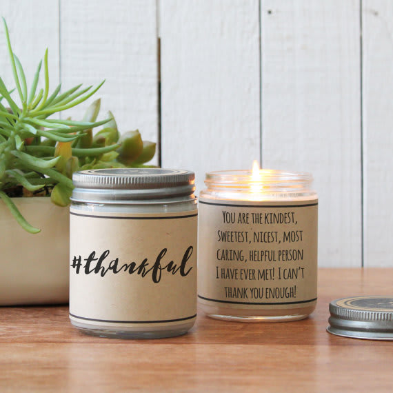 Hashtag Thankful Candle Gift Thank You Gift Appreciation Gift Thanksgiving Gift Thankful Gift Teacher Aide Gift Teacher Gift Gift Hero Wish Lists