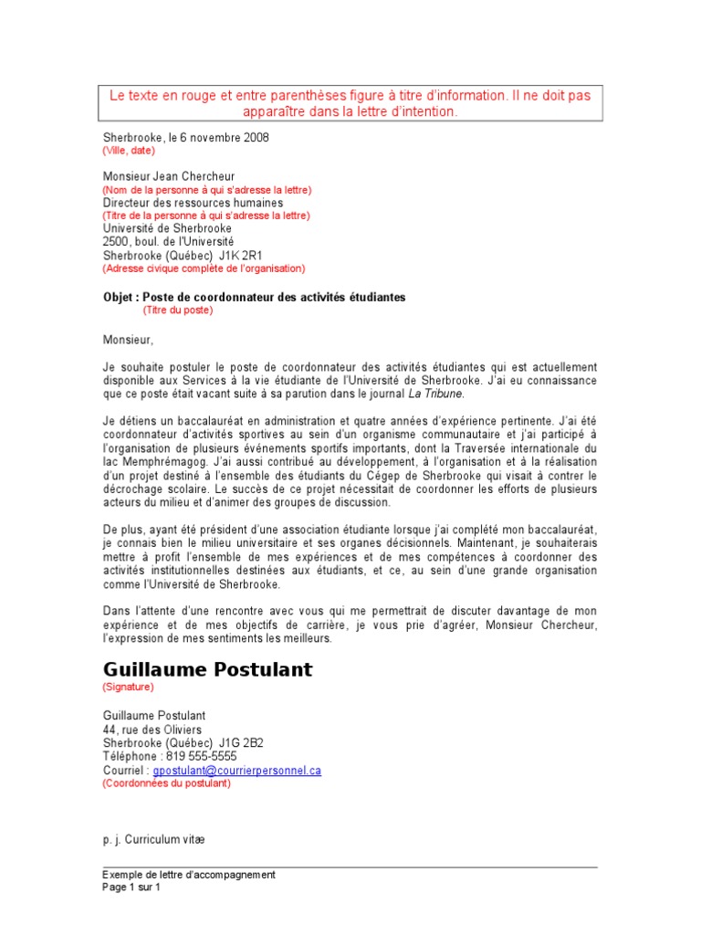 Lettre De Motivation Service Des Stages Et Du Developpement Professionnel Universite De Sherbrooke