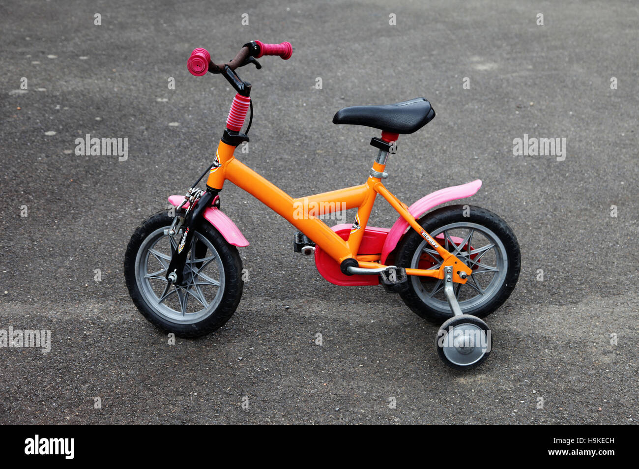 Kid S Bicycle With Side Wheels Stock Photo Alamy
